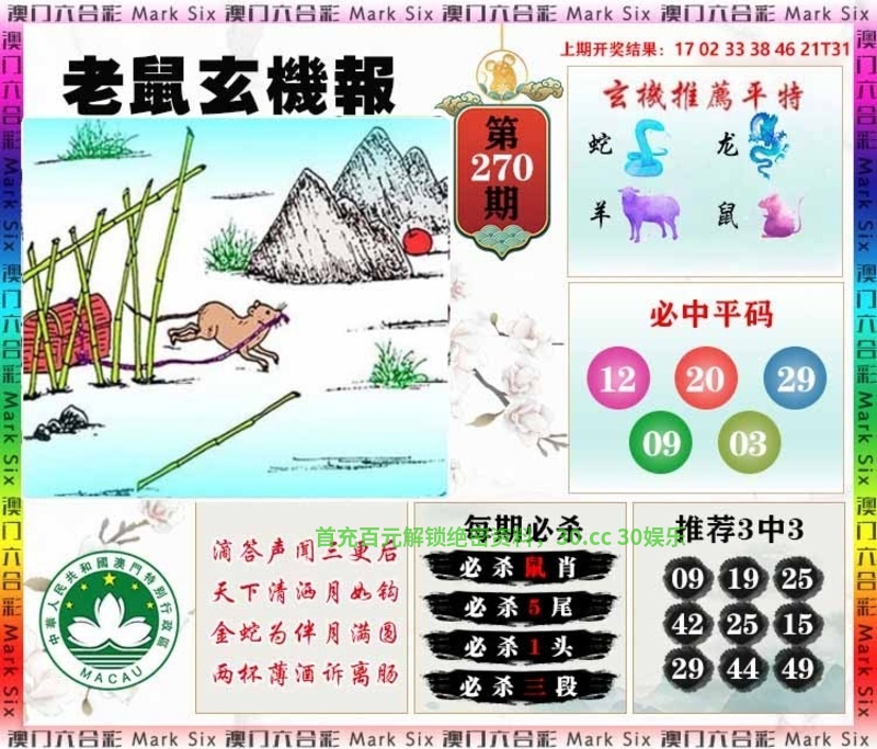 270期六肖 | 猴蛇龙鸡鼠羊 | 开:羊35 |