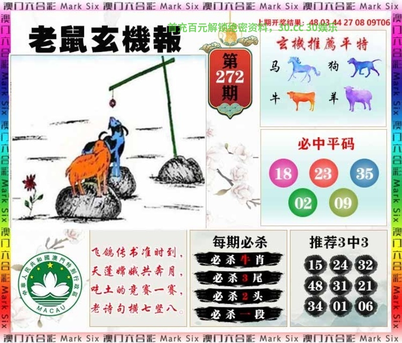 270期『四头爆中』❀『1234头』开:羊35准 |
